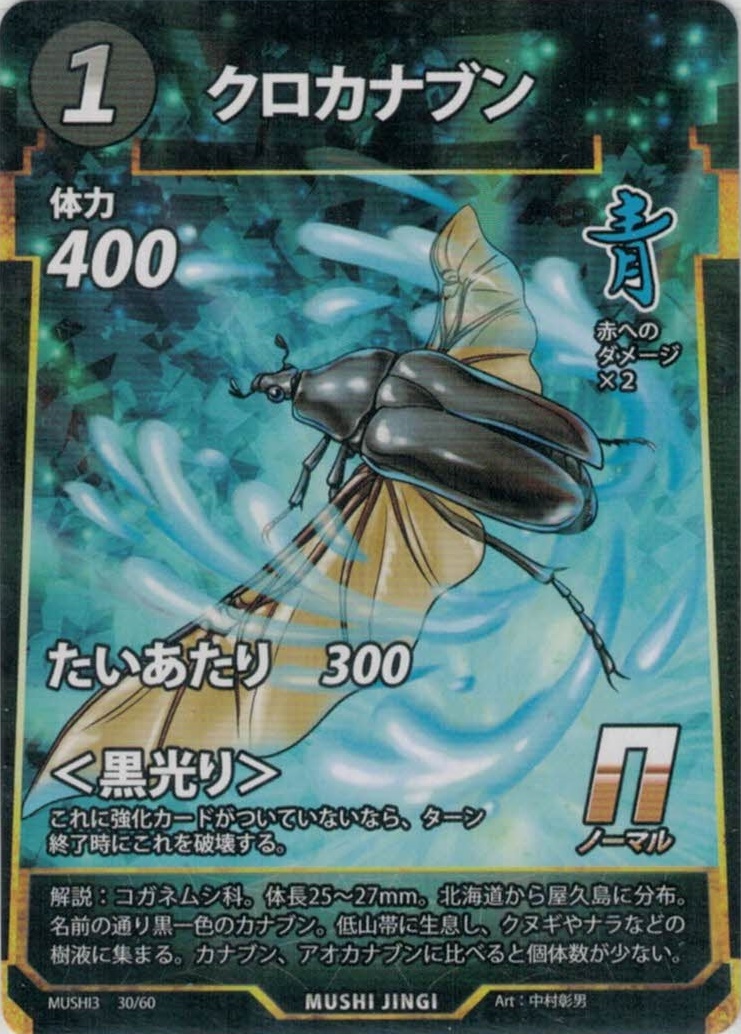 | MC-030 | クロカナブン | 1 | 400 | たいあたり 300 <黒光り> これに強化カードがついていないなら、ターン終了時にこれを破壊する。 |