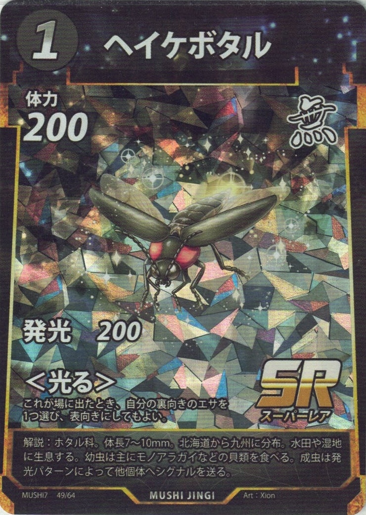 | MG-049 | ヘイケボタル | 1 | 200 | 発光 200 <光る> これが場に出たとき、自分の裏向きのエサを1つ選び、表向きにしてもよい。 |