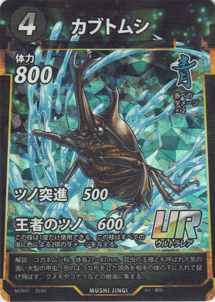 | MA-034 | ヘラクレスオオカブト | 6 | 1600 | 神のツノ突進 1000 ヘラクレス投げ 0 相手の虫を1匹選び、手札に戻す。これは1度しか使用できない。 |